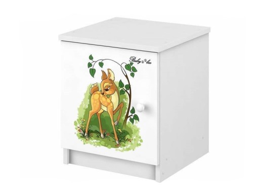 Szafka nocna (nakastlik) wykonana jest z płyty wiórowej o grubości 16 mm. Grawerowany front wykonany jest z płyty MDF w kolorze "jasny dąb". Modele z kolorowym nadrukiem maja kolor "biały" lub "venga". Nadruk na froncie wykonany jest z ekologicznych farb w pełni bezpiecznych dla dziecka, dodatkowo zabezpieczony specjalnym laminatem, tak aby nie uległ wyblaknięciu lub ścieraniu, można go bez obaw myć ściereczką i płynem.