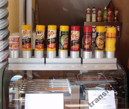 Część stojaków z oferty konkurencji jest wykonana bez spawania, co znacznie pogarsza sztywność produktu. Jest to jedynie pozaginana blacha, nic więcej. W dodatku nie ma zaślepek z boku co może powodować wysunięcie się tacki. Dodatkowo sosy nie są solidnie osadzone, jedynie podtrzymywane przez otwór na butelkę przez co sosy mogę się przechylać i wylewać. Niektórzy oferują stojaki w których butelki są osadzone na jedynie 3-5 centymetrów. Takie stojaki są całkowicie niestabilne, a butelki z sosami nie utrzymują pozycji pionowej. Całość jest zrobiona niskim kosztem, a produkt może nie spełniać oczekiwań.