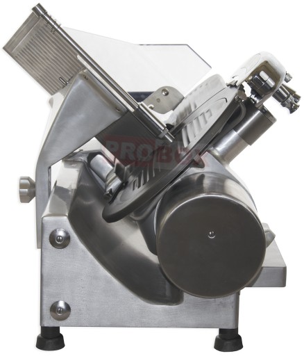 Napęd silnika oparty o niezawodną przekładnię ślimakową, sterowany przyciskami START/STOP. Krajalnica wyposażona w zabezpieczenieuniemożliwiające samoczynne włączenie się urządzenia po chwilowym braku napięcia, blokadę umożliwiającą zdjęcie stołu podawczego jedynie w zerowej pozycji pokrętła regulacji grubości plastra oraz ostrzarkę.