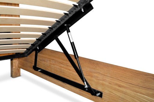 Podnoszony elastyczny stelaż pod materac (wkład do łóżka)! Stelaż wykonany jest z profilu 20x30x2, malowany w kolorze czarnym. Wypełniony jest on profilowanymi listwami brzozowymi o szerokości 53mm, które są zakotwiczone w ramie ruchomymi końcówkami z tworzywa sztucznego. Stelaż posiada 48 (24x2) elastycznych listew osadzonych w kauczukowych uchwytach zapewniających doskonałe podparcie oraz amortyzację materacowi. Stelaż przeznaczony jest do łóżek, który umożliwia dostęp do skrzyni przy pomocy siłowników (sprężyn gazowych). Stelaż posiada ramki przytrzymujące materac, otwory pod siłowniki oraz dwa otwory do zamocowania pasów do podnoszenia stelaża (paski można dokupić na osobnej aukcji). W zestawie otrzymują Państwo komplet siłowników do samodzielnego montażu!