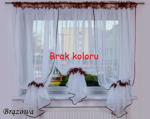 Firana PORTUGALIA to propozycja dla osób, które lubią klasykę, ale w nieco odświeżonej wersji. Całość składa się z trzech części upiętych na dole ozdobnymi wstążkami. Dodatkową dekoracją jest falbanka wzdłuż górnej krawędzi i lamówka. Firanka z woalu jest biała, ale akcenty – wstążki, falbanka i lamówka – mogą być w innym kolorze. Tych do wyboru jest naprawdę wiele – na przykład złoty, czerwony, pomarańczowy, błękitny czy brązowy albo szary. Z pewnością każdy znajdzie kolor dopasowany zarówno do wnętrza, jak i do swoich preferencji.