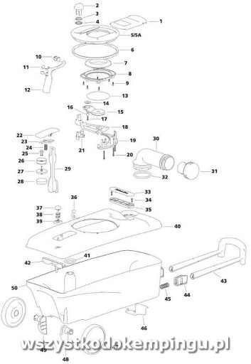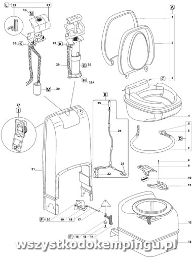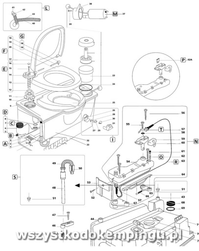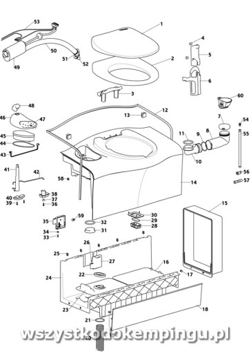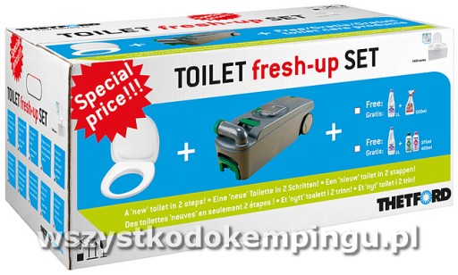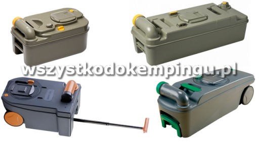 Zestaw zawiera zawiera deskę sedesową z pokrywą, nowy zbiornik na fekalia i zestaw płynów.