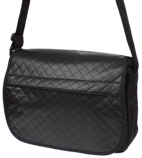 Torba listonoszka czarna. Mieści format A-4. Polski produkt, producent Pariso. Uszyta z bardzo mocnego materiału Codura oraz pikowanej eko-skóry.