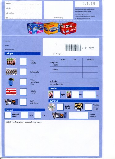 Koperty robocze do pakowania zdjęć amatorskich w cenie brutto 34,99 zł za opakowanie 100 sztuk.