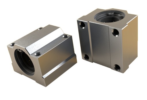Łożysko liniowe uszczelnione, zamknięte tupu LM w obudowie aluminiowej, anodowanej z gwintowanymi otworami montażowymi. Obudowa posiada cztery nagwintowane otwory montażowe, a zastosowane łożyska są wymienne i posiadają standard wymiarowy japoński (LM)