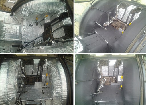 Mata butylowa usztywnia karoserię, tworzy barierę dla hałasu, likwiduje rezonans, dudnienie i buczenie. Pianka kauczukowa izoluje od szumów i wysokich częstotliwości.