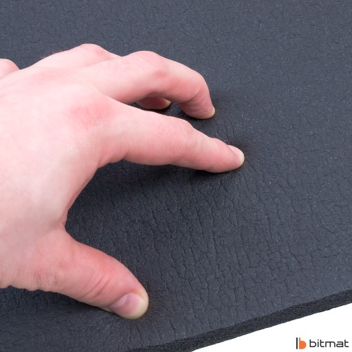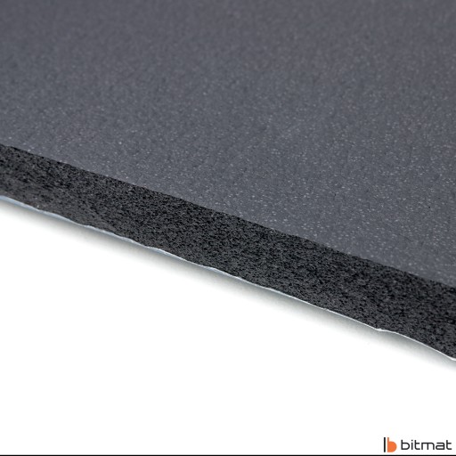 Mata wygłuszająca K19s Bitmat — pianka izolacyjna gumowa o strukturze komórek zamkniętych z warstwą mocnego kleju, posiada wysokie właściwości akustyczne oraz izolacyjne.