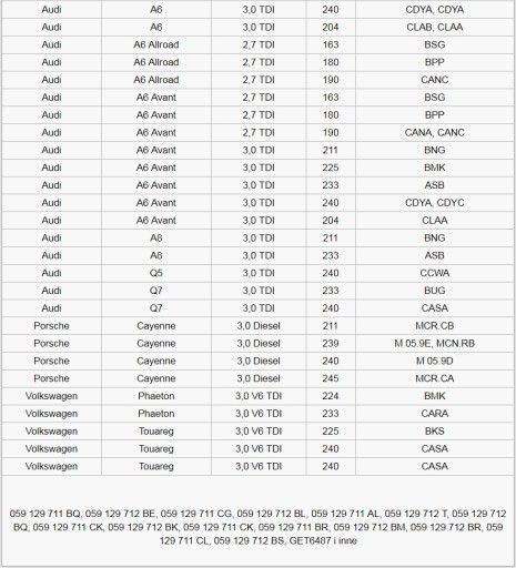 Kolektory pasują do wszystkich samochodów Audi/VW z silnikiem 2.7/3.0 TDI V6