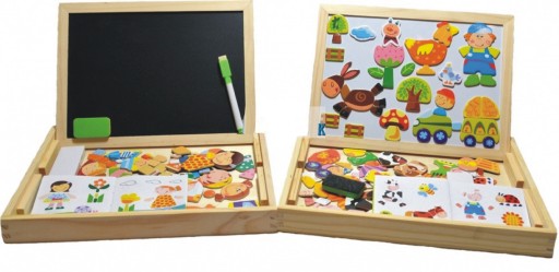 Każdy zestaw zawiera: kredę, pisak, gąbkę do ścierania, zestaw klocków magnetycznych.