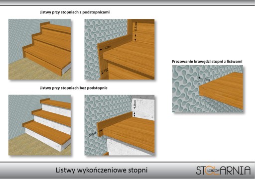 4) Wymiary stopni, podstopni, podestów? Stopnie zabiegowe proszę rozrysować i nanieść wymiary lub podać ilość (wymiary gotowych stopnie z wypustami). Proszę podać rodzaj wykończenia -grafika poniżej.