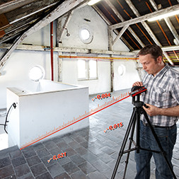 Pomiar dachów oraz elementów skośnych wymaga dokładnego ustawienia dalmierza.