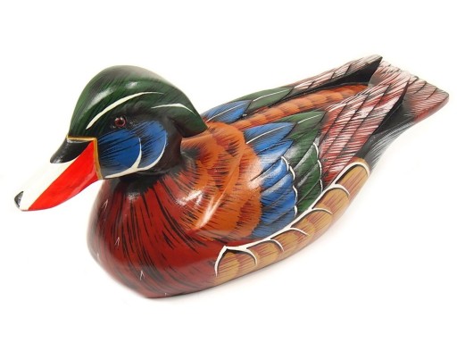 Ręcznie rzeźbiona i malowana KACZKA z twardego drewna egzotycznego z czerwonym dzióbkiem