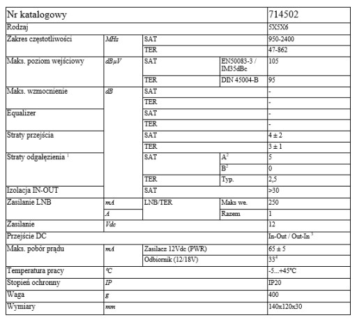 Przedmiotem sprzedaży jest Multiswitch kaskada 5x5x6.