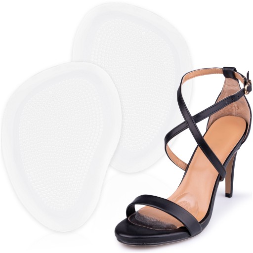 Pół wkładki żelowe przeznaczone do butów na wysokim obcasie. Zapobiegają zsuwaniu się stopy w bucie. Miękki żel amortyzuje przednią część stopy.
