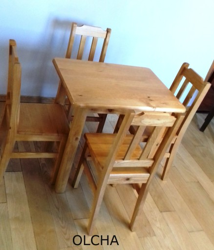 - Solidny drewniany stół, wykonany z wysokiej jakości drewna sosnowego.