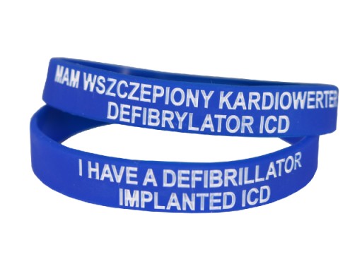 Niebieska silikonowa opaska dla osób z wszczepionym kardiowerterem defibrylatorem serca ICD