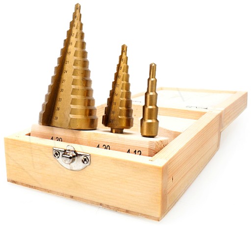 ZESTAW 3 WIERTEŁ STOŻKOWYCH STOPNIOWYCH HSS + TYTAN