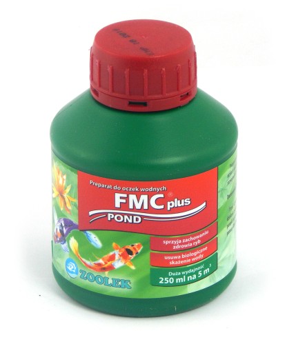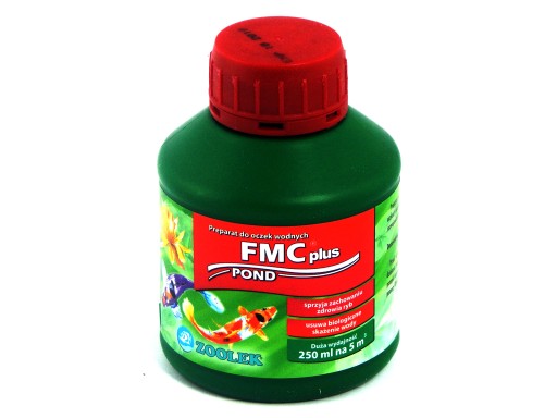 FMC firmy ZOOLEK to preparat do odkażania wody w oczkach wodnych. Preparat o szerokim działaniu przeciw większości szkodliwych mikroorganizmów. Preparat pomaga utrzymać właściwe warunki dla hodowli ryb ozdobnych w oczkach wodnych. Wytrąca odpadowe substancje organiczne, zapobiega rozwojowi mikroorganizmów i sprzyja zachowaniu zdrowia ryb.
