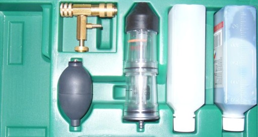 Dwukomorowa konstrukcja przyrządu (z filtrem pomiędzy komorami) pozwala na odseparowanie pozostałości w