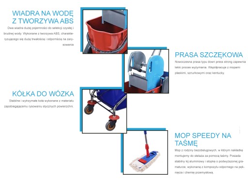Zestaw sprzątający: wózek 2 x 20 litrów oraz mop na taśmę 40cm.