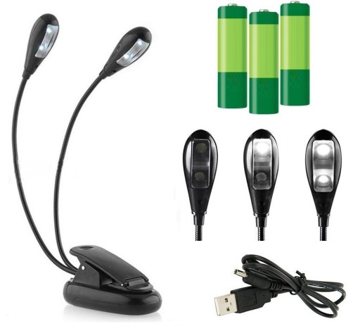 Lampka na pulpit podwójna z bateriami - można używać od razu.