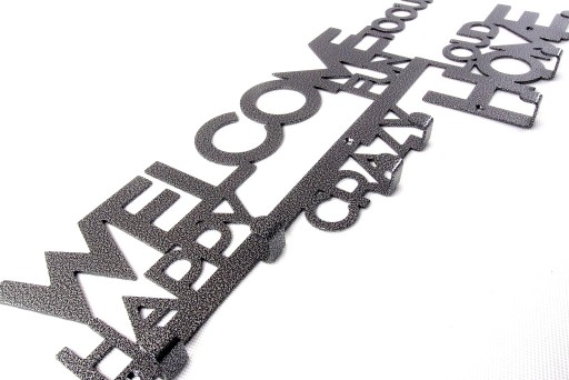 ORYGINALNY projekt przeplata się tu z praktycznymi haczykami, z kolei całość przywodzi na myśl ZABAWĘ SŁOWEM - bo w zależności od tego, jak spojrzymy na wieszak, możemy odczytać cały napis lub skupić się na podkreślonym Welcome Home.