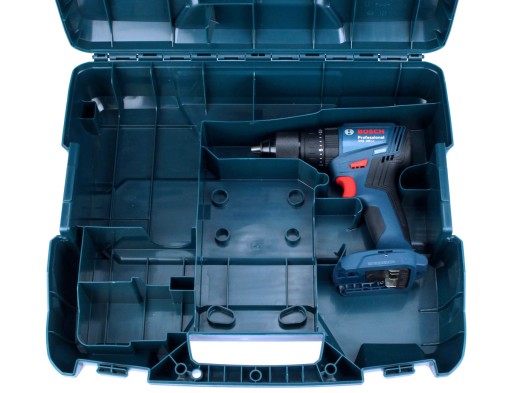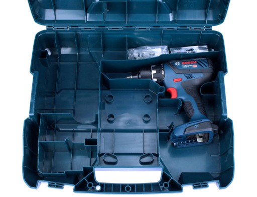 Wewnątrz walizka posiada odpowiednie wytłoczenia i uchwyty pozwalające na bezpieczny transport narzędzia, posiada również specjalnie wyprofilowane uchwyty do przechowywania osprzętu dodatkowego (wierteł, bitów wkrętarskich, uchwytów wiertarskich, akumulatorów, czy ładowarek).