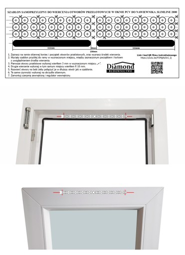 Szablon samoprzylepny do wiercenia otworów przelotowych dla nawiewników okiennych w oknach PCV.
