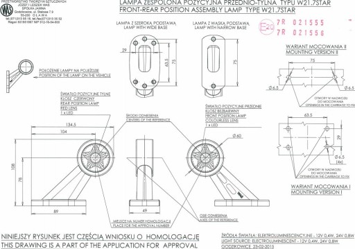 - Funkcje: światło pozycyjne przednie, światło pozycyjne tylne