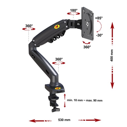 - uchwyt posiada sprężynę gazową umożliwiającą płynną delikatną regulację wysokości monitora