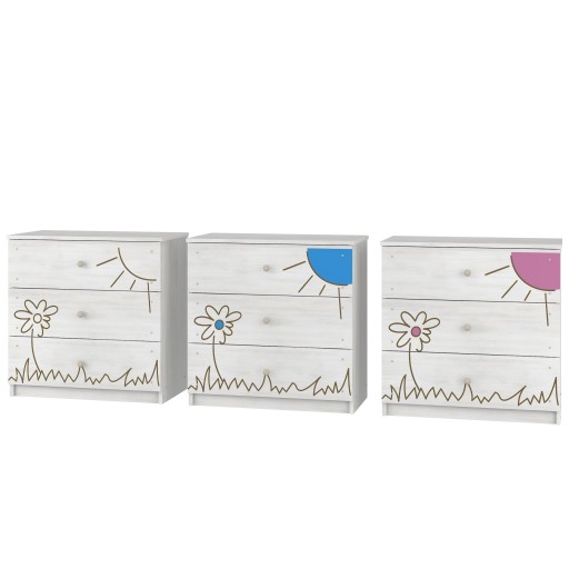 - komody z nadrukiem kolorowym i bokami w kolorze surf biały