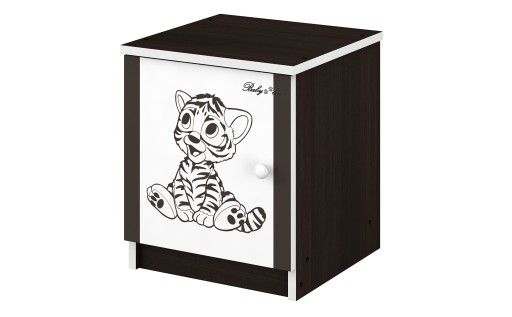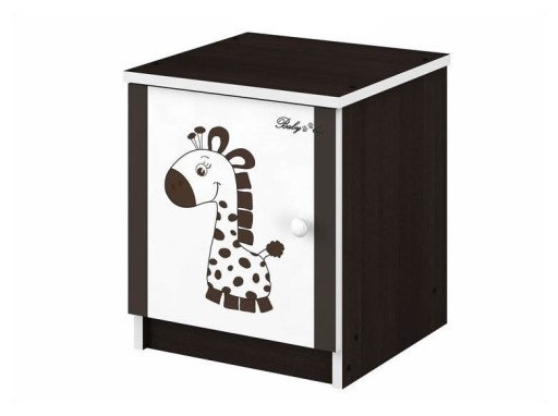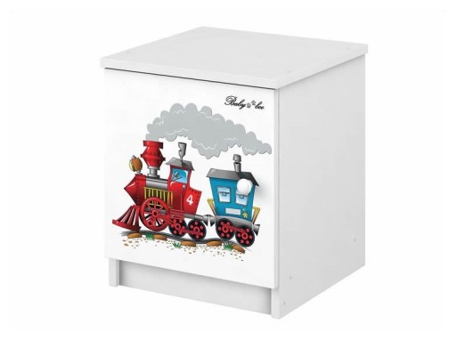 Szafka nocna wykonana jest z płyty wiórowej, o grubości 16 mm. Na drzwiczkach znajduje się kolorowy nadruk, bądź grawerowany wzór.
