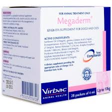 Megaderm jest suplementem diety (mieszanką paszową uzupełniającą) zawierającym najlepsze niezbędne nienasycone kwasy tłuszczowe (NNKT) z rodziny omega 3 (Ѡ3) i omega 6 (Ѡ6), w optymalnych ilościach i w idealnej proporcji.