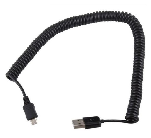 Kabel Spiralny USB - MicroUSB do synchronizacji, przesyłania danych i ładowania telefonów, tabletów 30-300cm.