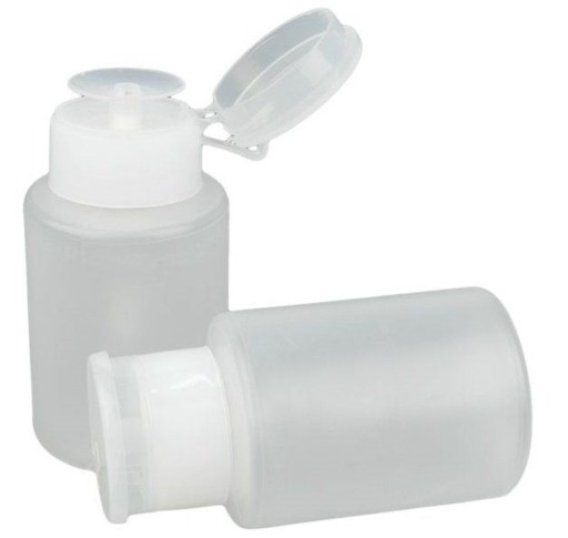 Doskonałej jakości dozownik/buteleczka z pompką do wszelkich płynów kosmetycznych o pojemności 150 ml. Dzięki niemu w sposób łatwy, szybki higieniczny nawilżysz wacik preparatem, bez niepotrzebnej utraty płynu. Dozownik wykonany z plastiku półprzezroczystego, nietłukący się, nie rdzewieje, posiada przykrywkę zapobiegającą utlenianiu się i parowaniu płynów. Wygodnie aplikowanie płynu na wacik, wystarczy docisnąć wacik do buteleczki.