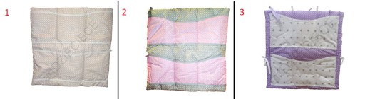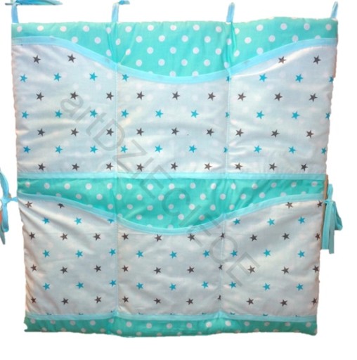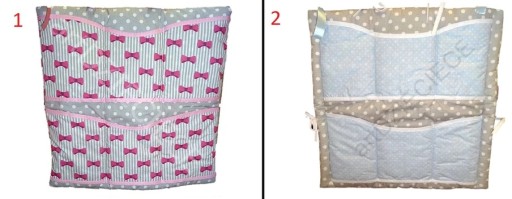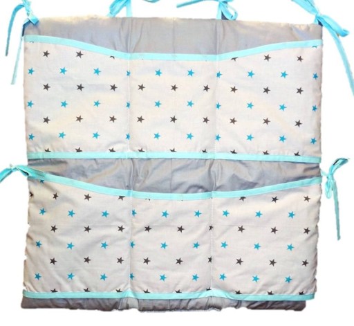 Przybornik posiada troczki, za pomocą których można go przymocować do boków lub frontu łóżeczka.
