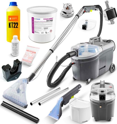 Zestaw zawiera dodatkowo środki do prania ekstrakcyjnego i czyszczenia wszystkich powierzchni zmywalnych