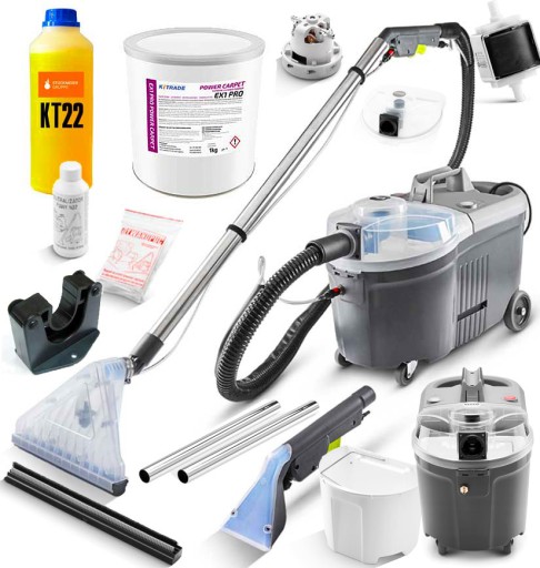 Zestaw zawiera dodatkowo środki do prania ekstrakcyjnego i czyszczenia wszystkich powierzchni zmywalnych