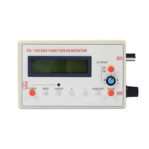FG-100 to kompaktowy w pełni funkcjonalny, prosty w obsłudze, łatwy do przenoszenia generator funkcyjny oparty na cyfrowej syntezie częstotliwości DDS. W połączeniu z oscyloskopem może służyć do testowania i pomiaru obwodów elektronicznych, testowania, sprawdzania np. wzmacniaczy audio (charakterystyki częstotliwościowej). Generowane przebiegi: sinusoidalny, prostokątny, trójkąt , przebieg piłokształtny.