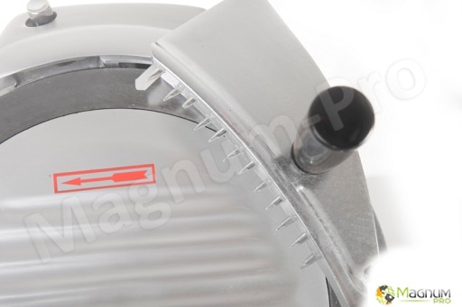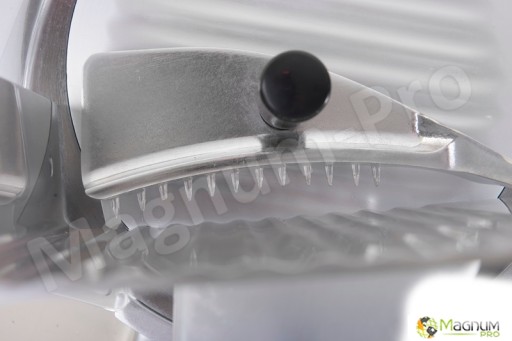 Krajalnica posiada chromowany na twardo nóż o średnicy 22 cm ze szlifem wklęsłym oraz gładkim ostrzem. Nóż ma regulowaną bezstopniową odległość co zapewnia grubość cięcia od 0 do 12 mm.