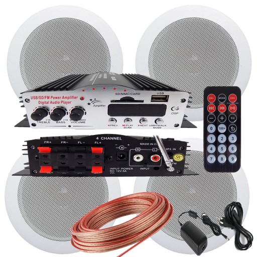 4 ПОТОЛОЧНЫХ ДИНАМИКА + КОМПЛЕКТ USB SD FM УСИЛИТЕЛЯ