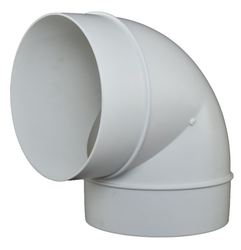 Kolano z tworzywa sztucznego do łączenia rur fi 100mm pod kątem 90 stopni.