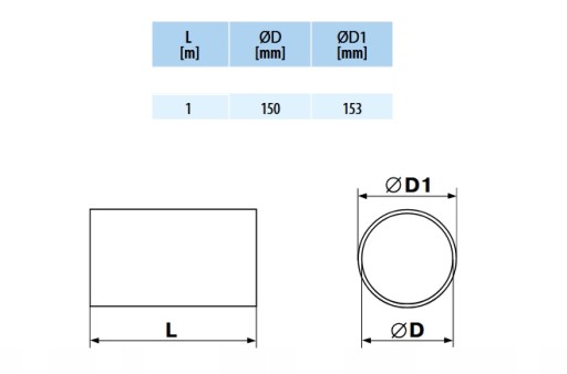 Вентиляционный канал круглый, диаметр 150, 1 м.