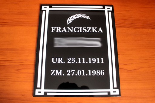 TABLICZKA NAGROBNA - TABLICA NA GRÓB - DUŻA TARCZA 25x30cm BIAŁA LUB CZARNA