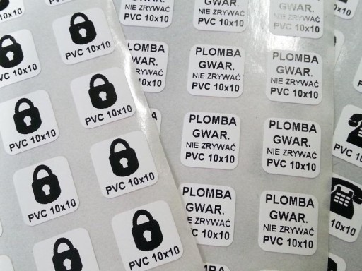 Oferujemy wykonanie 1000 sztuk plomb gwarancyjnych w rozmiarze 10x10mm, z BIAŁEJ ŁAMLIWEJ FOLII PVC. Materiał posiada silne właściwości destrukcyjne.