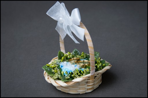 Koszyczek jest idealnym rozwiązaniem w przypadku gdy obrączki do ołtarza niesie dziecko -pałąk umożliwia pewny chwyt a mocowanie obrączek dodatkowo je zabezpiecza.