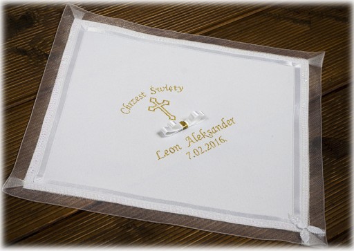 Imiona i data chrztu będą wyhaftowane w takiej formie, jaką Państwo podadzą w opisie.