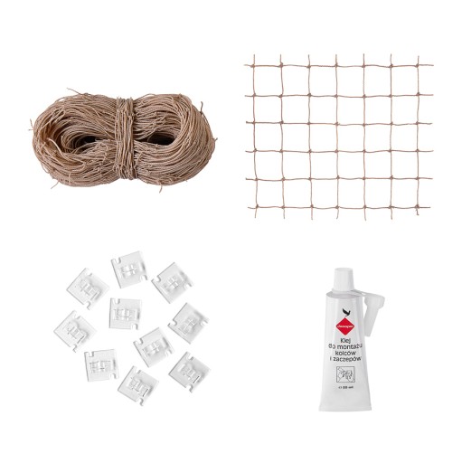 Zestaw do samodzielnego zamontowania siatki na balkonie. Bardzo prosty montaż : bez wiercenia, kołków, linek itd. Zaczepy firmy JACOPIC gwarantują profesjonalny i estetyczny montaż. Zaczep wykonany jest z poliwęglanu , odporny jest na nawet na najcięższe warunki atmosferyczne. Klej Jacopic zapewnia trwały montaż do każdej powierzchni.