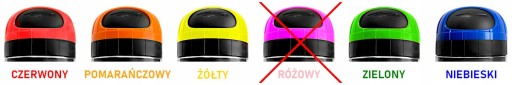 - Kolor: czerwony / pomarańczowy / żółty / różowy / zielony / niebieski