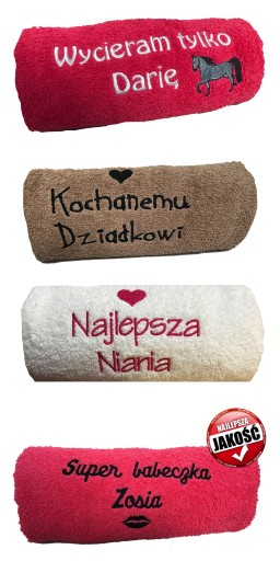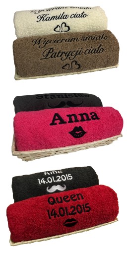 Wykonujemy ręczniki z imionami, indywidualnymi tekstami, ponadto wykonujemy ręczniki ślubne z datami zaślubin i imionami nowożeńców, oraz metryczki dziecka.